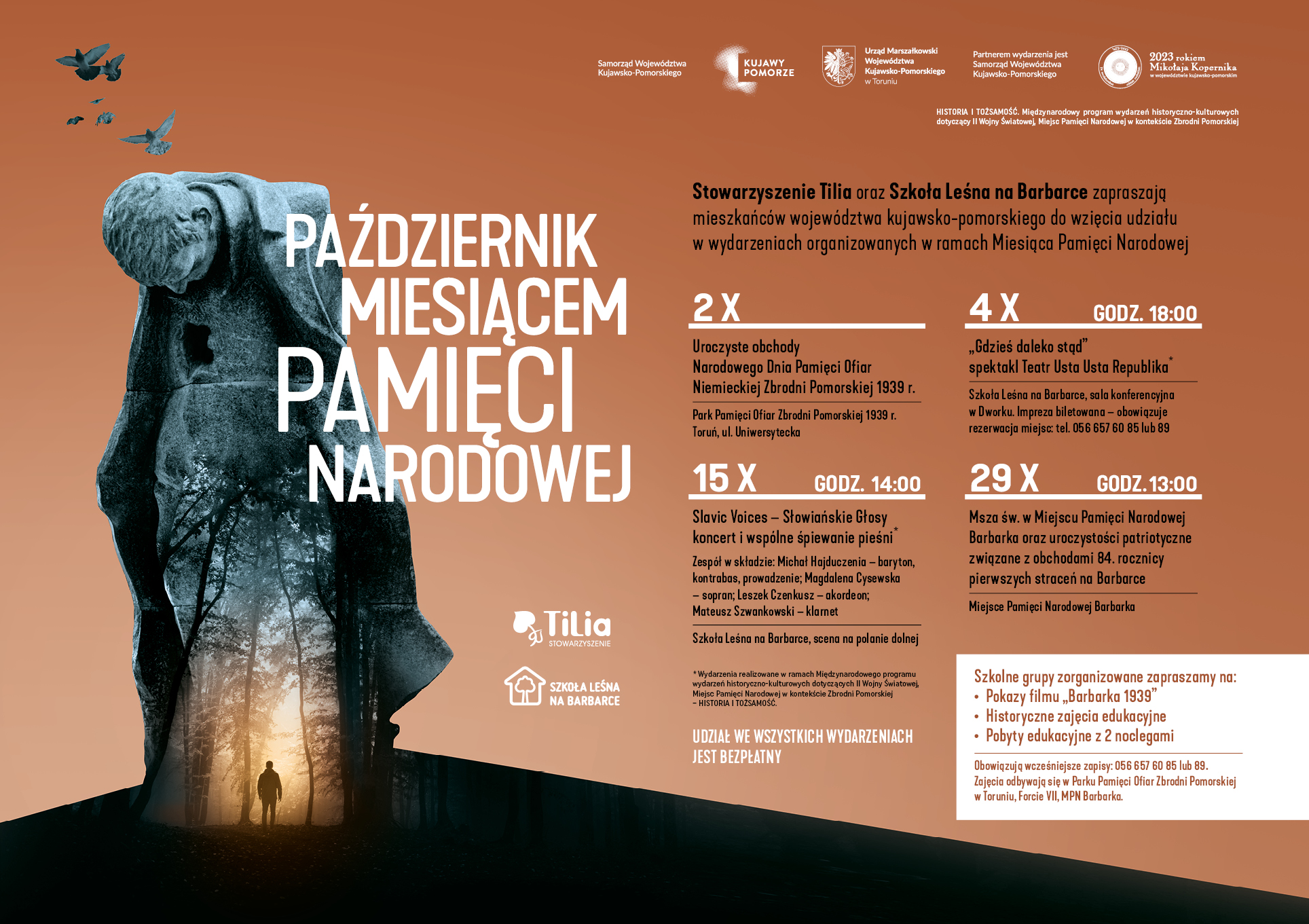 Stowarzyszenie Tilia prowadzące Szkołę Leśną na Barbarce w Toruniu zaprosza mieszkańców Torunia oraz całego regionu województwa kujawsko – pomorskiego,  do wzięcia aktywnego udziału w październikowych obchodach Miesiąca Pamięci Narodowej.