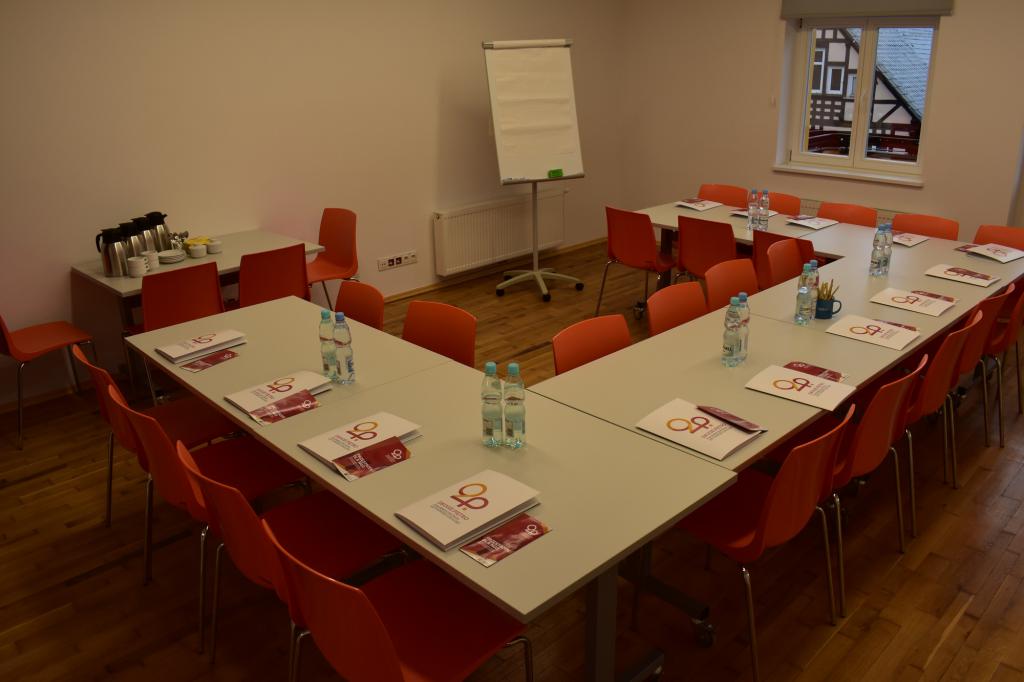 Na jej wyposażeniu składają się biurka, krzesła, flipchart, rzutnik oraz komoda. Jej przestronne wnętrze pozwala użytkownikom na swobodne przeprowadzenie spotkania formalnego, a sprzęt multimedialny z łatwością obsłuży elektroniczne prezentacje czy filmy.